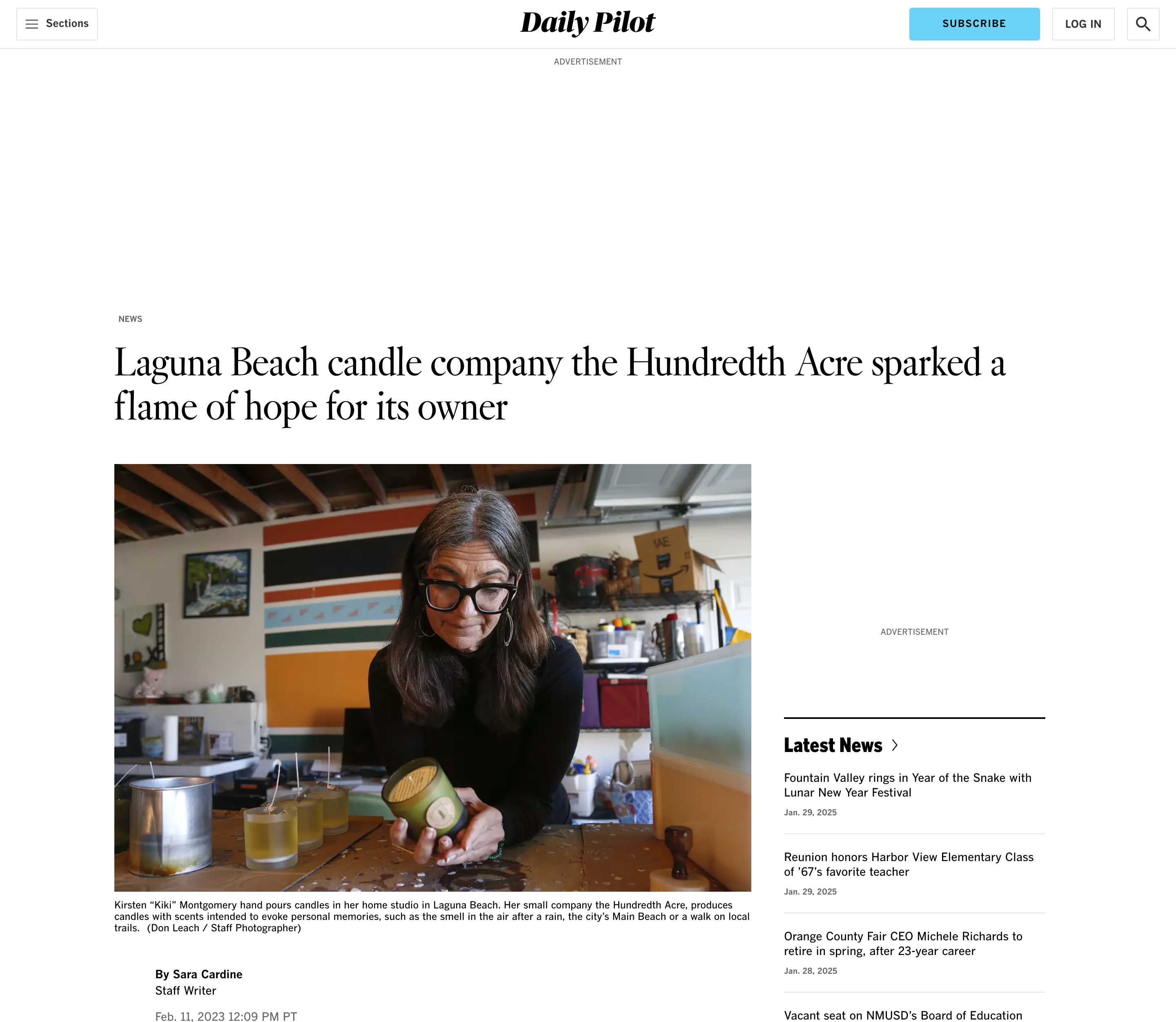 Fast forward to 2021. Laguna local Kirsten Montgomery, newly single and seeking a fresh start, found solace in the flickering flames of candles. The fragrant whispers of each burning wick unearthed a kaleidoscope of memories, pushing her towards introspection and a yearning for a brighter future. It was a turning point. Realizing what she truly needed was "light," both metaphorical and literal, Kirsten seized the opportunity offered to her to take over The Hundredth Acre.